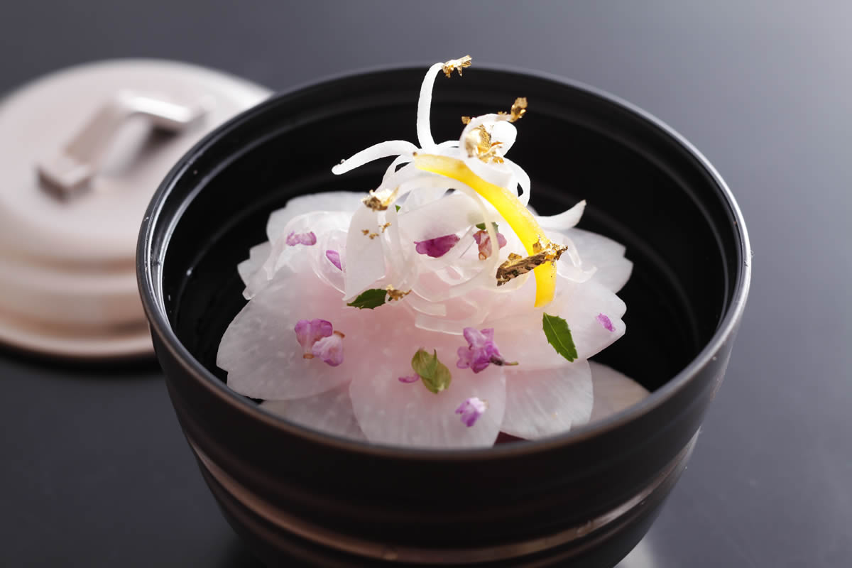 鯛魚僅使用天然的本地產品。 在日本海的波濤洶湧的大海中捕獲的天然沙丁魚,口感極佳,味道濃郁。 使用當地生產的深色醬油和當地清酒,小火煮一個小時以上,直至變得有光澤,同時仔細檢查口味。 請享受我們引以為傲的燉沙丁魚。